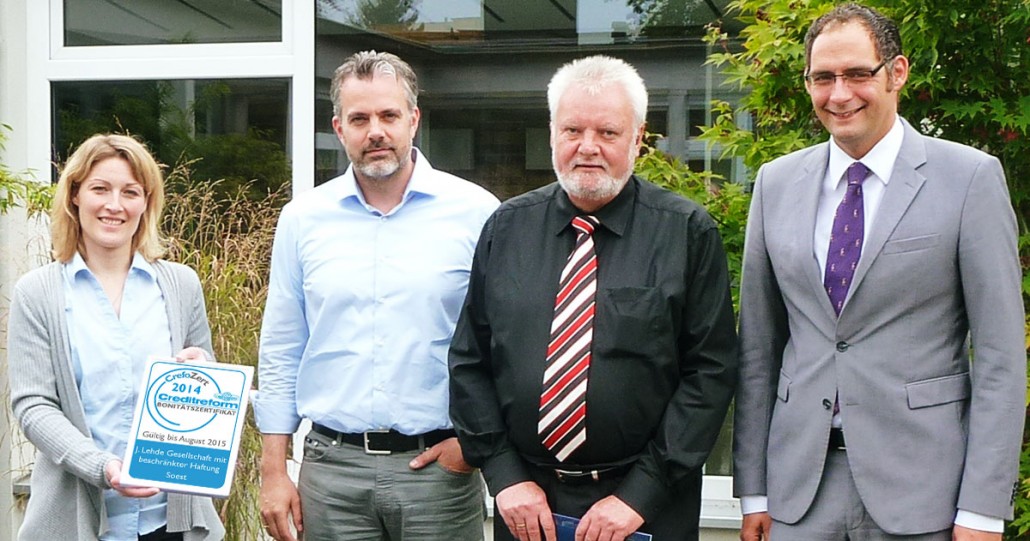 Wie schon in den vergangenen Jahren ist unser Familienunternehmen auch 2014 mit dem Creditreform Bonitätszertifikat „CrefoZert“ ausgezeichnet worden.