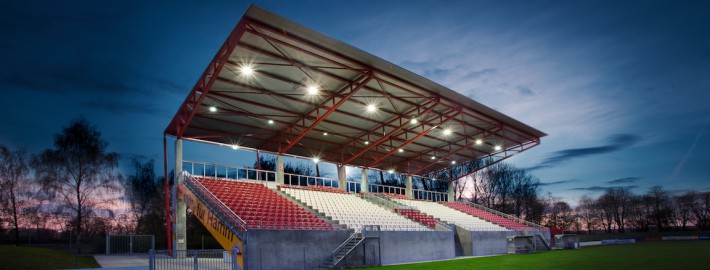 Gebaut hat Lehde diese Tribüne bereits vor einiger Zeit. Auf der 40m langen und 12m hohen Betonkonstruktion finden 900 Zuschauer platz. Lehde produzierte, lieferte und montierte sämtliche Betonteile, die für den Bau der Zuschauerränge benötigt werden. Darunter Stützen, Zahnbalken, Brüstungselemente und die Treppe. Außerdem umfasste das Bauprojekt die Errichtung von Abstellräumen und sanitären Anlagen unterhalb der Ränge.