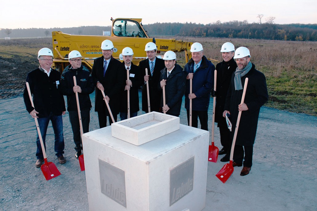 Der Grundstein in Büren wurde im November gelegt, nur ein Jahr später kann das aufstrebende Unternehmen, das seinen Sitz bereits heute im Airport-Gewerbepark hat, den neuen Standort beziehen. Der ehrgeizige Zeitplan des Großprojekts ist nur möglich durch die Verwendung von Stahlbetonfertigteilen, produziert von Lehde.
