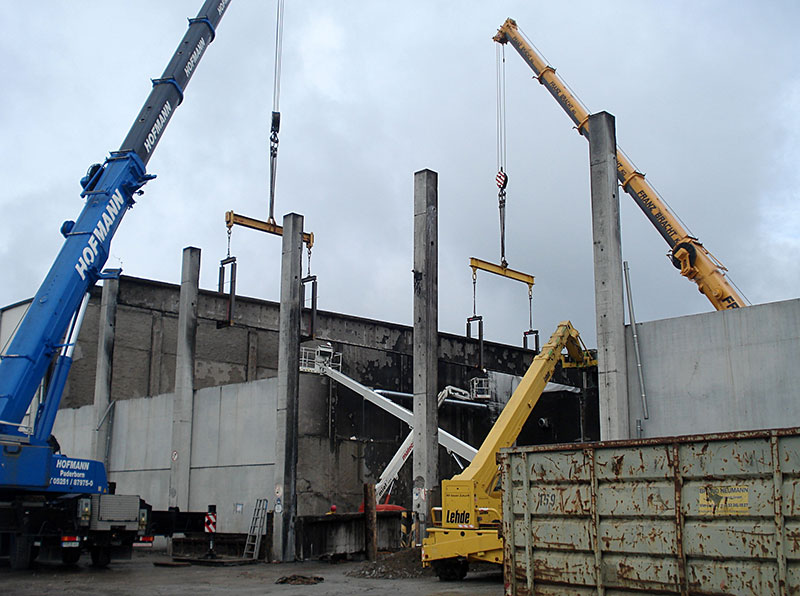Lehde verantwortet bei dem Neubau nicht nur die gesamte Ausführungsplanung sowie Produktion, Lieferung und Montage der bis zu 40 Meter langen Betonfertigteile, sondern koordiniert letztlich auch alle Abläufe und Gewerke an der Baustelle. Dabei ist sogar der Fertigstellungstermin des Schlüsselfertigbaus im Vertragswerk auf die Woche genau fixiert, so dass PTG Präzisions-Technik über ein Maximum an Planungssicherheit verfügt.
