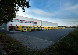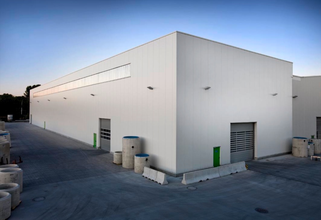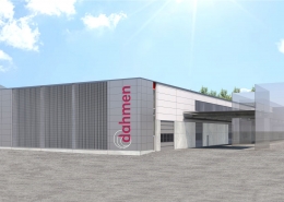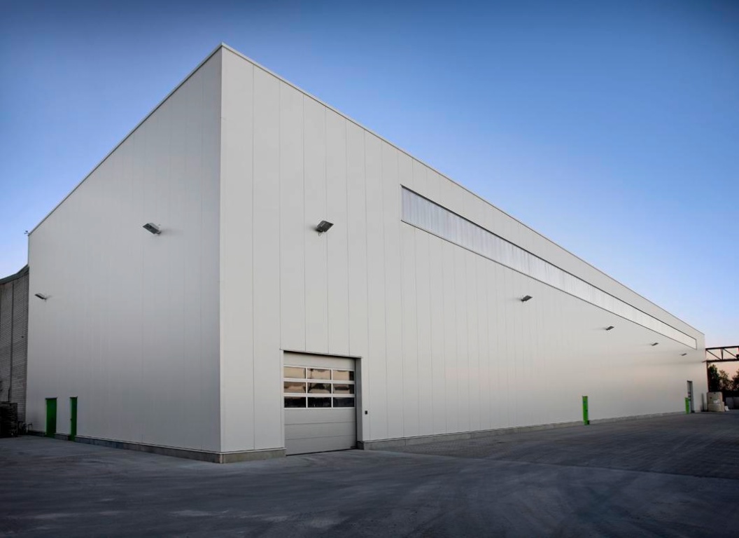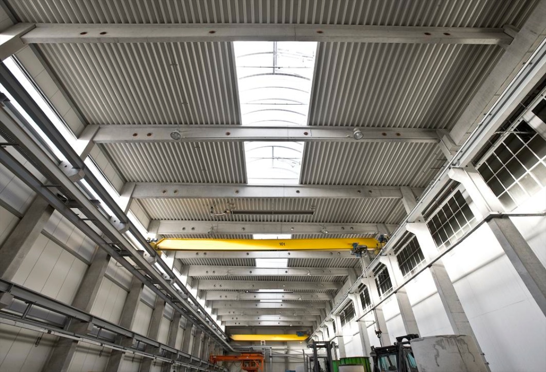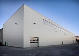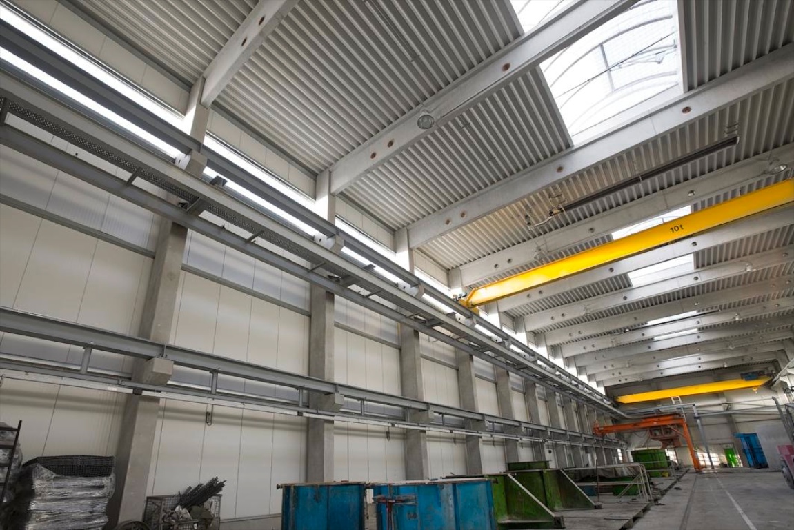 Herstellung, Lieferung und Montage aller Betonfertigteile, Gründungsarbeiten, Dach- und Wandverkleidungen, Bodenplatten innen und außen für Gabelstapler bis 40 to. Sanierung der Bestandsdächer.