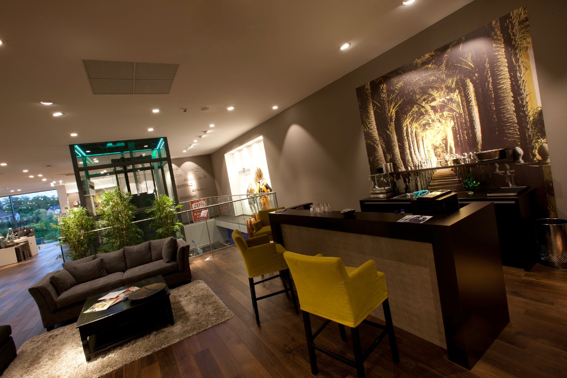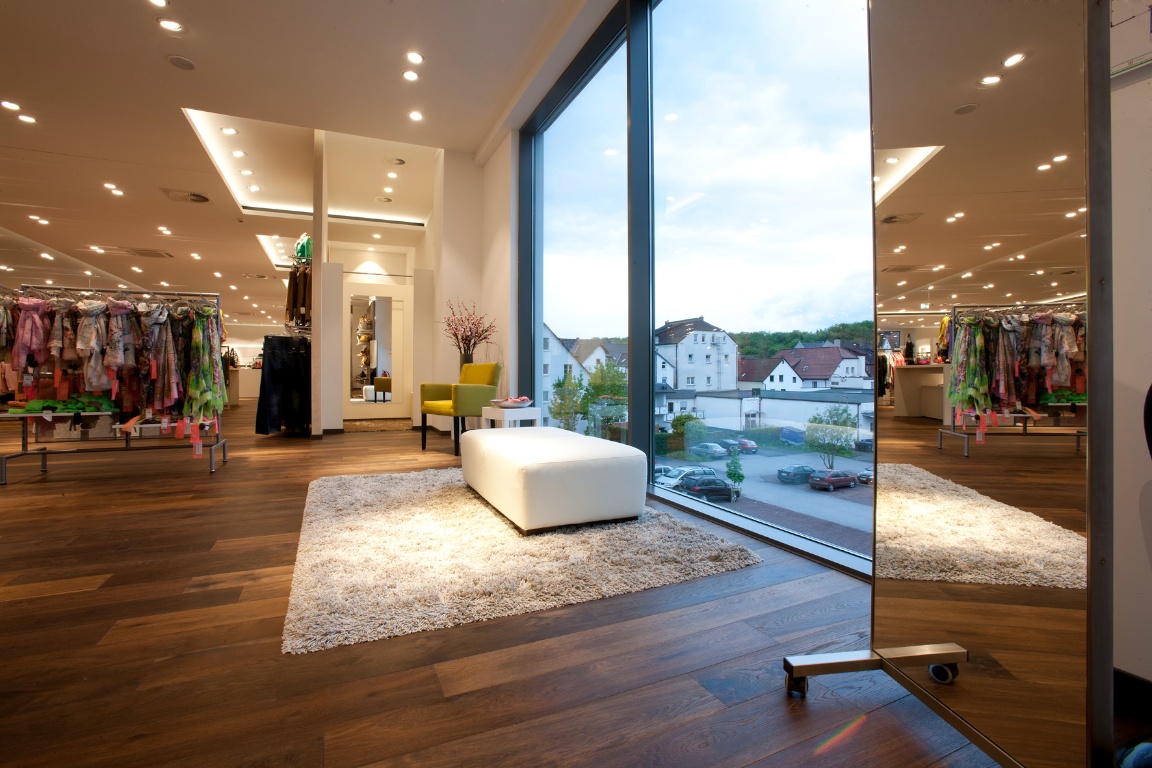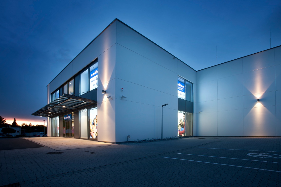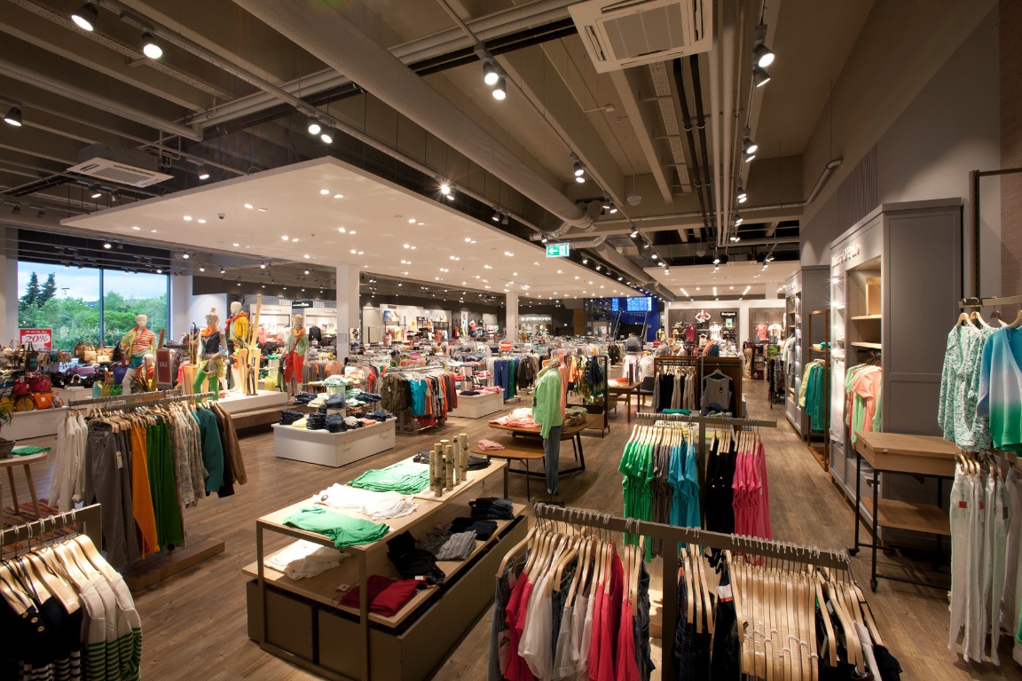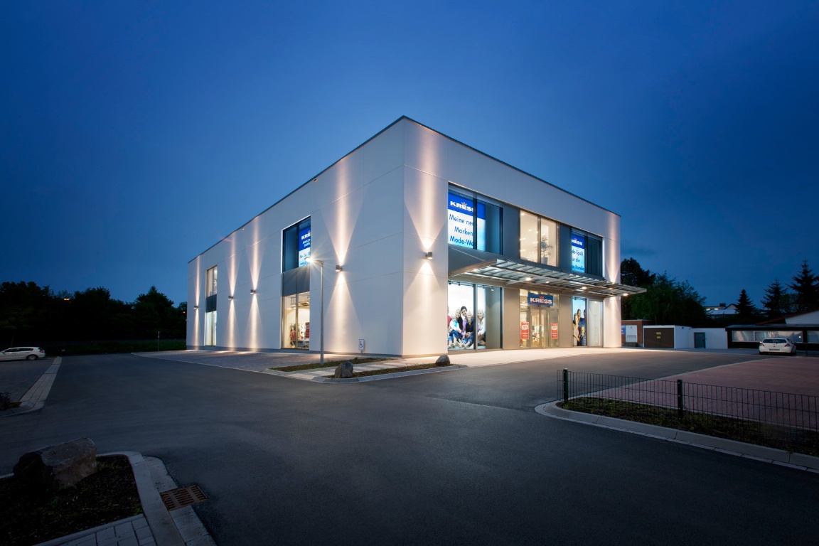 Schlüsselfertiger Neubau des Modezentrums aus eigenen Stahlbetonfertigteilen inkl. aller Ausbaugewerke sowie aller Architektenleistungen. Sanierung eines Bestandsgebäudes.